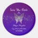 Modern, elegant, unik, glitter falskt silverfjäril i kombination med bedårande lila kunglig blå bakgrund. Chic, fantasifull, tidlös Quinceanera spara datum inbjudan magnet.