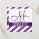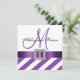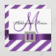 Bröllopsinbjudningar för Lila och vitt monogram med diagonalt rand mönster och ett färgband för tryckt lila och en tryckt fyrkantig diamantbroms på ett platta kort med kvadratiska tecken. Layout Design av Elke Clarke ©2012. Grafik licensierad. Anpassa med text i monogrammet, namn och bröllop med hjälp av anvisningarna att välja "anpassa" för fler redigeringsalternativ. Brides kärlek, de berömda inbjudningarna med juveler och rosett band tills de kommer till postkontoret och inser att inbjudningarna kommer att kosta så mycket mer att skicka till deras gäster. Dessa inbjudningar och tillbehör till paketen i bröllop har fotot på bandet med satin och diamantbroschyren tryckt på platta kort. Det slutar med att du får effekten elegant utan kostnaden för extra och arbetet med att sätta ihop dina inbjudningar. Kontakta luxuryweddinginvitations@gmail.com om du vill ha andra färger eller hjälp med din design eller de matchande objekt du behöver.