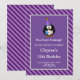 Denna “Lila randig ram rolig födelsedagsfestinbjudan” har en pingvin som håller presenter och frågar “Kommer ni?” Det kommer att få dina gäster att skratta mer än en gång. Beställ idag och låt skrattstormen börja