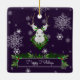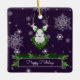 Dekorera träd i julhelg med Lila Reindeer Ceramic Ornament. Utformningen av prydnadsföremål är en prydnadsrenare som bär en julandedräkt som är försedd med hullbär och fallande snöflingor och en Julhälsningar låda som är dekorerad med helgdag. Ytterligare presentartiklar och helgdag som är tillgängliga med den här designen också.