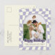 Lila Retro Groovy Checkated Glad helg Photo Vykort