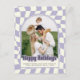 Lila Retro Groovy Checkated Glad helg Photo Helgdag Card