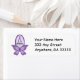 Lila returadress om medvetandegörande om cancer i etikett