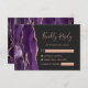 Det moderna bröllop OSA-kortet på den lämnat kant i eleganten har en lila vattenfärgsagat gräns som trimmas med faux ro guld glitter. Texten finns i handskriftsskript för ro rosa och typsnitt för färgplatta på en svart bakgrund. Den omvända sidan har en matchande lila och ro guld-agate-design.