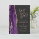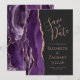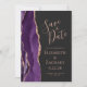 Det moderna bröllop spara datum-kortet på den lämnat kant i eleganten har en lila vattenfärgsagat gräns som trimmas med faux ro guld glitter. Med anpassadet kombinerar du handskrift, ritplatta och kursivt typsnitt på ro med svart bakgrund. Den omvända sidan har en matchande lila och ro guld-agate-design.