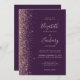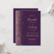 Den lämnat kant i eleganten är en modern bröllopsinbjudan som har en ro-guld faux-design för glitter. Anpassadet kombinerar handskrift, rityta och kursivt typsnitt i blek ro-färgad med mörkens lila. På baksidan finns utrymme för bröllop-information på en solid lila-bakgrund, tillsammans med en QR-kodgäst som kan söka på webbplatsen och OSAN, vilket sparar kostnaderna för utskrift och utskick av separat OSA kort.