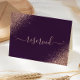 Den här eleganten har det moderna bröllop bord-kortet för sittplatser ro guld faux glitter i motsatt hörn. Ord "reserverad" visas i handskriftsskriptet ro rosa med dekorationer före och efter på mörkens lila på båda sidor av kortet.
