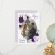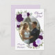 Tack till gästerna i bröllop för deras kärlek och stöd med detta vackra fotokort. Har bild i en ovalformad ram omgiven av ett antal handmålade vattenfärgsfärger ro i skuggor av lila, plommon och lavender. På kortets framsida står "Tack" i elegantens skriptbokstäver, med utrymme för namn nedan. Baksidan är en blek lavender färg och har plats för en kort-not och namnteckning. Du kan också radera texten och använda rummet för din egen handskrivna anteckning. Underbart slut till din nya början!