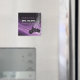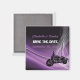 Lila biker bröllop spara datum magnet, med en motorcykel på abstraktens lutande lila, svart bakgrund och vitt nät. Lite inslag från Clipartandfonts.com.