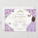 Lila Ros Blommig Guld Tiara Fjäril Quince Inbjudan