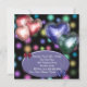 Snygga lila, gröna och rosa hjärtballonger på en pastellfärgad prickig bakgrund flickors sjunde födelsedagsfest inbjudan och matchande kuvert.