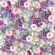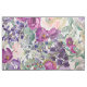 Fabric med söt, boho, land-stil vattenfärgsfärg blommigt och grönt med blommor och löv av lila och rosa och sage grönt .