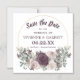 Djupt lila ro och bär och rosa ros är inkapslade i mjuk grönt löv för att bilda en halvandedräkt vid grund i en elegant guld ram. Spara datum skrivs i ett skript med djupgående lila i finare högst upp. Återstoden av texten finns också i den djupa dammiga lilan i en klassisk kombination av typsnitt. Datumet i bröllop är i fetstil så att det framhävs.Det här magnetspara datumkortet är en del av Lila Sage-samlingen. Det innehåller mallarna som du kan använda för att skapa det unika Spara datumpapperet.