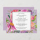 Jokerblommor för rosa och lila på lila studentfest-vykort. Anpassa till högskolan, högskolan eller universiteten party.