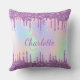 En färgad med trendig, holografisk bakgrund med enmajs och regnbåge pastellform färg i rosa, lila, mynta grönt. Dekorerad med faux glitter droppar i lila och rosa. Anpassa och lägga till namn och monogram initialer. Namn är skrivet med ett modernt handskript i stil. Lila och rosa färgad brev.