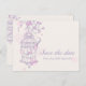 Lila rosa fågelbur bröllop spara datum kort