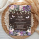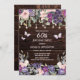 Lila Rosa Flowers Butterflies Rustic Wood 60:e Inbjudningar