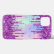 En regnbåge, enhörnigsbakgrund med färgad. Dekorerad med rosa och lila faux glitter drops, färgdroppstift. Anpassa och lägg till ditt monogram initialer, lila brev. Ditt monogram som bakgrund mönster.