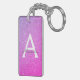 Lila och rosa ombre-falskt glitter och elegant nyckelring med gnista. Dessa nyckelringar kan anpassas till att inkludera din initial och förnamn och är en perfekt present till bröllop, bröllopsdusch, möhippa, eller söt 16-års födelsedagsfest.