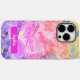 Trendig Lila Rosa Guld och skaltropiskt löv med rosa rand med vit trim och vitt skript namn, eller monogram.