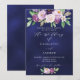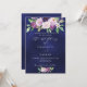 En marinblå bakgrund på framsidan. Den blå färgen är ojämn. Dekorerad med lila och lila akvarellblommor och grönska. Anpassa och lägg till era namn och festdetaljer.