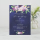 Lila rosa lila blommande marinblå lyxbröllop inbjudningar