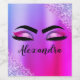 Lila och Rosa Falsk Folie Metallisk Glitter Borstat Metall Monogram Namn och Initial Ögonfransar (Fransar), Ögonfransförlängning och Ögon Vinsetikett. Designen gör den perfekta söta 16-års födelsedag, bröllop, bröllopsfest, årsdag, baby shower eller möhippa present för någon som letar efter en trendig cool stil.