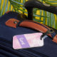 Lila, rosa och vit glitter bagagebricka