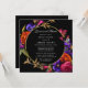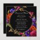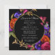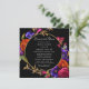 Elegant och djärv modern blommigt innehåller lila, orange och rosa blommor i svart förgrening. Detta djärva botaniska omger ett runt guld ram. Kärlek är i möhippan Bloom och informationen är i ljusvitt. Baksidan av inbjudan innehåller KÄRLEK skriven i dekorativt brev och förskönad med blommor. Den här möhippans lunchinbjudan är en del av Midnight Möhippa Collection. Skicka gärna ett meddelande om du behöver hjälp med att hitta matchande objekt.