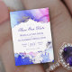 Det här lyxiga Spara datumkortet bröllop har en konstnärlig lila-abstrakt som tvättar färgstarkt smyckat bläck i ametyst och ruby. Om du blandar dig i en underbar, genomskinlig safiffrhue för rosa och accentuerar med vit guld/silver, är denna Spara datum formell samtidigt som du uttrycker en oberoende, lekfull, personlighet. Lägg enkelt till dina bröllop-uppgifter i mallen med hjälp av Zazzles anpassning verktyg. Ett lyxagat bläck tvättat bröllop spara datum med lila, rosa och vita guld/silver-toner. Kontakta oss om du behöver hjälp amoreamore@paulinebenjes.com. Lila Rosa Silver Abstrakt Bröllop spara datum.