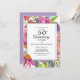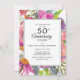 50 års bröllopsdagbröllopsmiddagsinbjudanrosa akvarell blomsterlila blommorbotaniskträdgårdblommorboho