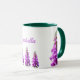Lila rosa, vita vilda blommor blommigt namn mugg