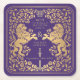 Lila Royal Lejon Medieval Sword Bröllop Underlägg Papper Kvadrat