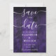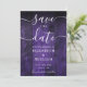 Den här elegant lila rustic lador boho bröllop spara-the-date-kortet kan vara personlig med dina uppgifter i chic typografi och ett speciellt foto på baksidan. Designad av Thisisnotme©