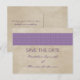 Elegant och chic Rustic Damask Spara vykortet för datum med en vintage som texturerad papper bakgrund och ett blomstrande dammmönster gräns i lila. Enkel att anpassa, lägg bara till information om bröllop. Klicka på Anpassa om du vill söka efter fler anpassningsalternativ.