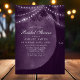 Inbjudan dina kära för att fira brudgummen med det här fantastiska inbjudningskort för möhippan. Med en rustisk silhuett från träd, som är försedd med en tvillingsträng ljus och personlig med parets initialer, anger denna inbjudan tonen för ett möte om hjärtan. Den romantiska bakgrunden för lila tillför lite elegans och stollig, perfekt för en utomhusdusch eller trädgårdskur.