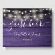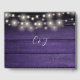 Lila Rustic Wood String Ljus Skript Bröllop Gästböcker