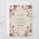 Denna design har en varm och jordnära palett av dämpad lila och kräm. Ömtåliga akvarellrosor är parade med luftig pampasgräs och torkad lövverk för att skapa en romantisk bohemisk estetik. Bakgrunden är en mjuk beige, som ger en vintage-känsla till det övergripande botaniska arrangemanget.