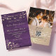 Börja din kärleksresa med vår exklusiva rustika träpurpurbröllopsinbjudan. Denna moderna men ändå eleganta design har en fängslande QR-kod för bekväm RSVP, tillsammans med en länk till din bröllopswebbplats. Förbättrad med en touch av boho-guldblommig spets och ömtåliga strängljus, sätter denna inbjudan scenen för en fest fylld med romantik och charm. Fånga essensen av din speciella dag med denna tidlösa och sofistikerade inbjudningssvit.