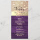 Fånga essensen av tidlös elegans med vårt moderna men rustika bröllopsprogramkort inspirerat av ladugårdstom. Delikat utsmyckad med rika lila nyanser, intrikat guldbroderi och fantastiska ljuslyktor, det blandar sig sömlöst med boho-charm och modern stil. Varje detalj, från den trendiga kalligrafiska skriften till de naturliga rustika texturerna, lovar en firande som är lika unik och förtrollande som din kärlekshistoria.