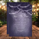 Meddela din speciella dag med vårt lila träd strängljus spara datum-kort. Denna förtrollande design har ett rustikt träd prytt med strängljus, vilket skapar en varm och inbjudande atmosfär. Perfekt för utomhus- och skogstema bröllop, detta unika spara datum kommer att fängsla dina gäster och sätta den perfekta tonen för ditt bröllop.