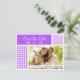 Du kommer att älska denna söta, eleganta lila rutiga gingham-mönsterdesign! Besök vår butik, Trendy Wedding, för att se detta coola mönster på många fler fantastiska anpassningsbara produkter, inklusive flickiga monogrampresenter, "Spara datum"- vykort och moderna bröllopsinbjudningar! Tack!