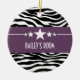 Trendig och nutida Sassy Star Zebra-prydnad med chic svart och vit zebra tryck-bakgrund och fet lila gräns med en roligt stjärnmotiv. Den här giftiga designen kan anpassas med den personlig du väljer. Klicka på Anpassa om du vill söka efter fler anpassningsalternativ.