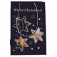 En presentpåse för lila-medium visar skisserade stjärnor som ramar anpassningsbarnas bilder under anpassadet God jul. Gör presentsäcken till din genom att ändra texten och byta ut bilder mot en viss anslutning till dina högre hemtjänster. Ytterligare anpassning innebär att du ändrar bakgrundsfärg och teckensnitt, storlekt teckensnitt och färg. Om du behöver hjälp eller vill diskutera ett anpassad design kontaktar du https://t.me/KBMD3signs_chat.
