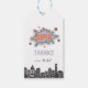 Lila serietidningssuperhjälte födelsedag presentetikett