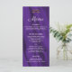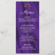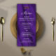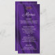 En snyggt och elegant lila bröllop-meny för bröllopsmottagningen med en lush, luxe lila mönster i silke. Det finns ett litet par gyllene bröllop ringar längst upp på menyn, och alla detaljer kan vara personlig till kostym. På baksidan av kortet finns samma silke lila-design med ett anpassningsbar par möhippa monogram som också kan anpassas till kostym.