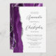 Den lämnat kant i eleganten i den moderna bröllopsinbjudan har en lila vattenfärgsagat gräns som trimmas med faux silver glitter. Anpassadet kombinerar skript och sans serif typsnitt i kol-grått på vit bakgrund. Den omvända sidan har en matchande lila- och silver-agate-design.