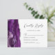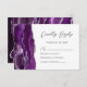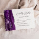Den vänstra kanten på detta eleganta moderna bröllop RSVP-kort har en lila akvarell-agat kant med falskt silverglitter. Titeln "Var god svara" visas i modern kalligrafi-stil, med anpassningsbar text nedan i kolgrå sans serif-teckensnitt på vit bakgrund. Baksidan har en matchande lila och silver-agat design.