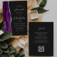 Den lämnat kant i eleganten i den moderna bröllopsinbjudan har en lila vattenfärgsagat gräns som trimmas med faux silver glitter. Anpassadet kombinerar skriptet silver grått och sans serif typsnitt på en svart bakgrund. Den omvända sidan ger plats för bröllop-information på en solid skifferbakgrund, tillsammans med en QR-kodgäst som kan söka på din webbplats och OSA, vilket sparar kostnaderna för utskrift och utskick av separat OSA kort.