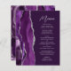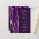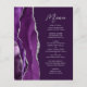 Den moderna menyn bröllop på den lämnat kant i eleganten har en lila vattenfärgsagatdesign som trimmas med faux silver glitter. Anpassadet kombinerar handskript för silver grått och sans serif typsnitt på plommonbakgrund. Lila och silver agate-konstruktionen upprepas på baksidan.